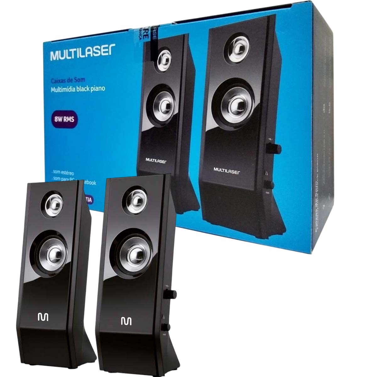 Modelo: Caixa De Som 2.0 8W P2+USB Black Piano Multi SP091