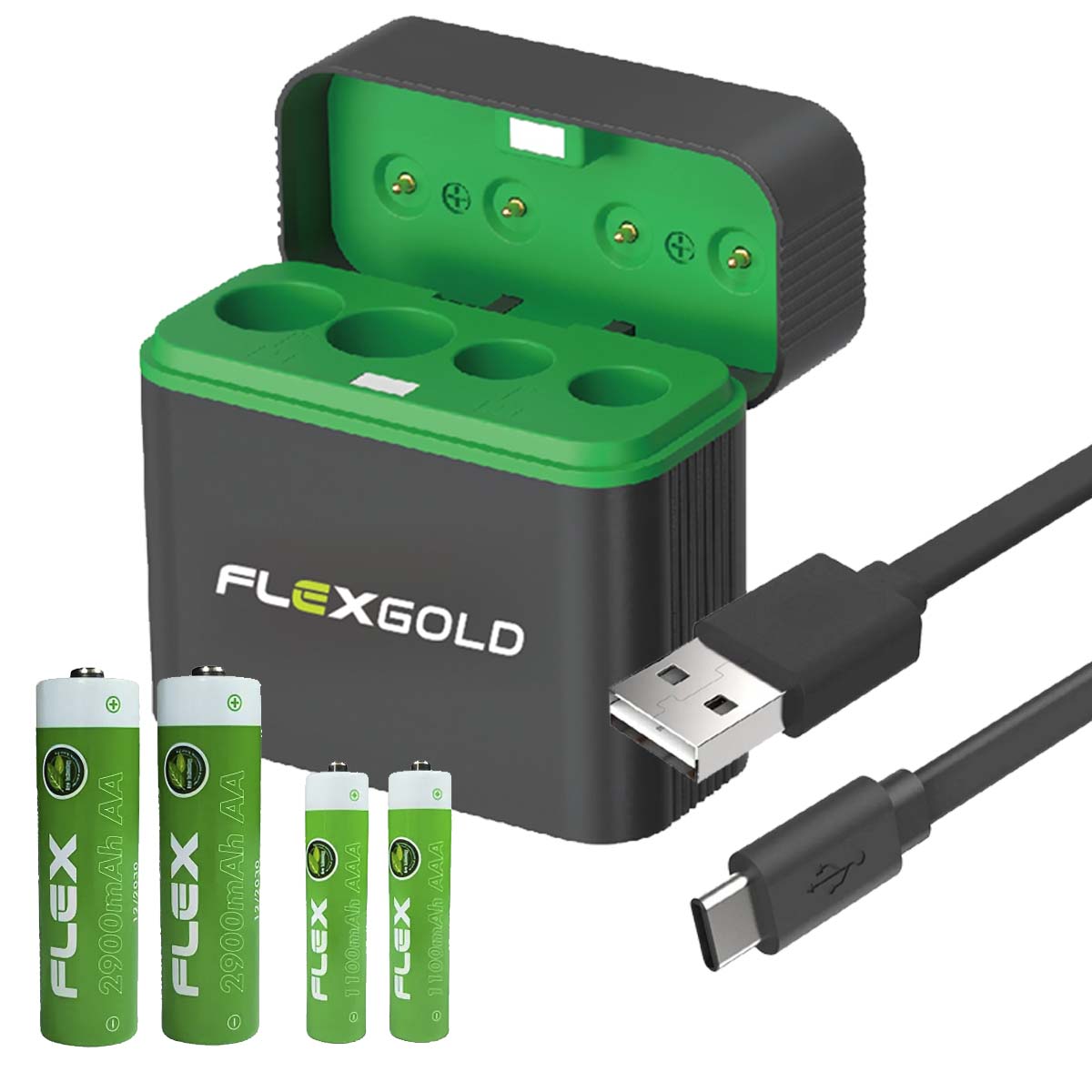 Carregador de Pilhas AA / AAA Flexgold FX-C20 com Cabo Type-C
