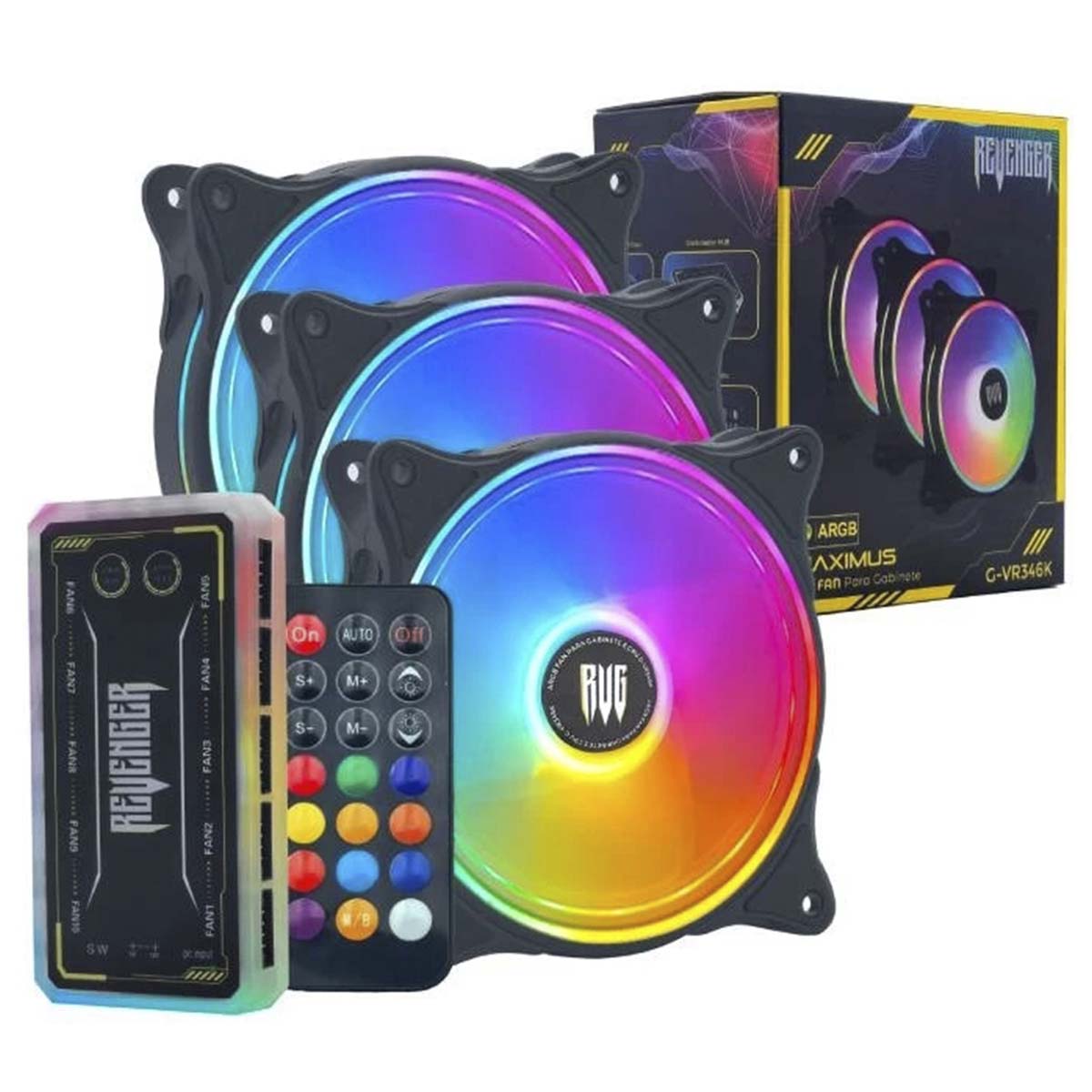 Kit 3 Cooler Fan 12cm Argb Controladora Ventoinha 12v Preto