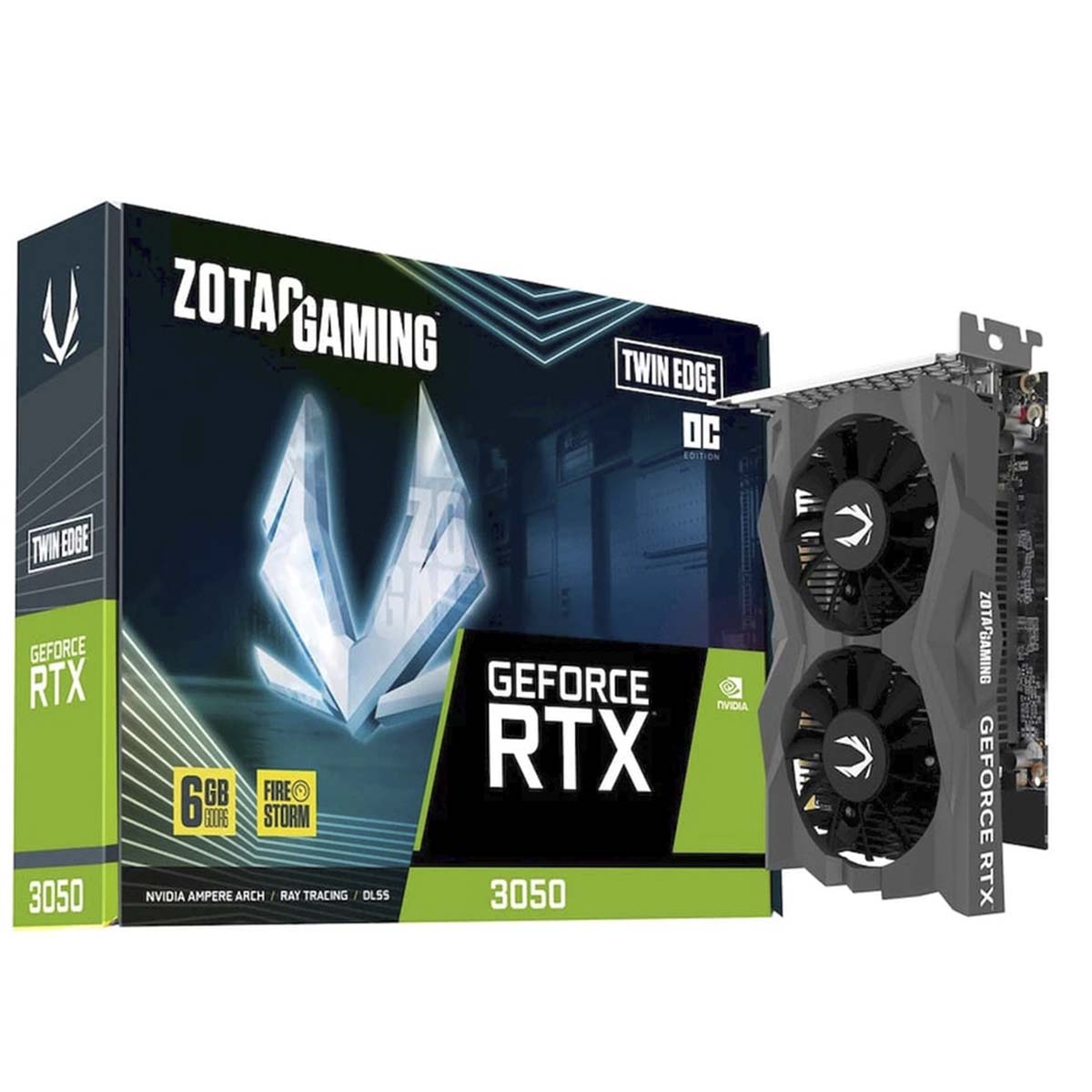 A ZOTAC GAMING GeForce RTX 3050 6GB GDDR6 Twin Edge OC oferece desempenho amplificado com a arquitetura NVIDIA Ampere, trazendo núcleos RT de 2ª geração, Tensor Cores de 3ª geração e memória GDDR6 de alta velocidade. Seu formato compacto garante compatibilidade com 99% dos gabinetes, mantendo excelente eficiência térmica com ventoinhas duplas de 70mm e tecnologia FREEZE Fan Stop.