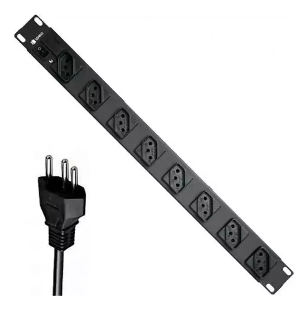 REGUA PARA RACK 19 POL 1U CALHA DE 8 TOMADAS 10A BIVOLT COM FILTO LINHA CABO 1.10M IPEC