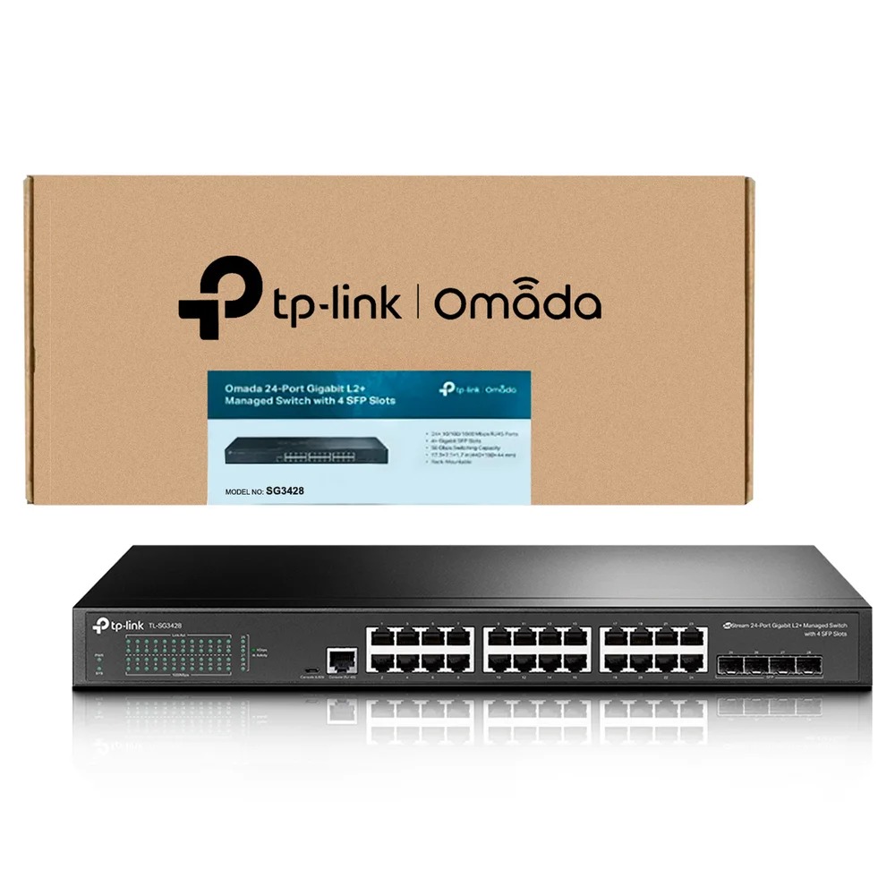 - Switch Tp-link Tl-sg3428 (t1600g-28ts T2600g-28ts) Gerenciavel Gigabit L2+ De 24 Portas Com 4 Slots