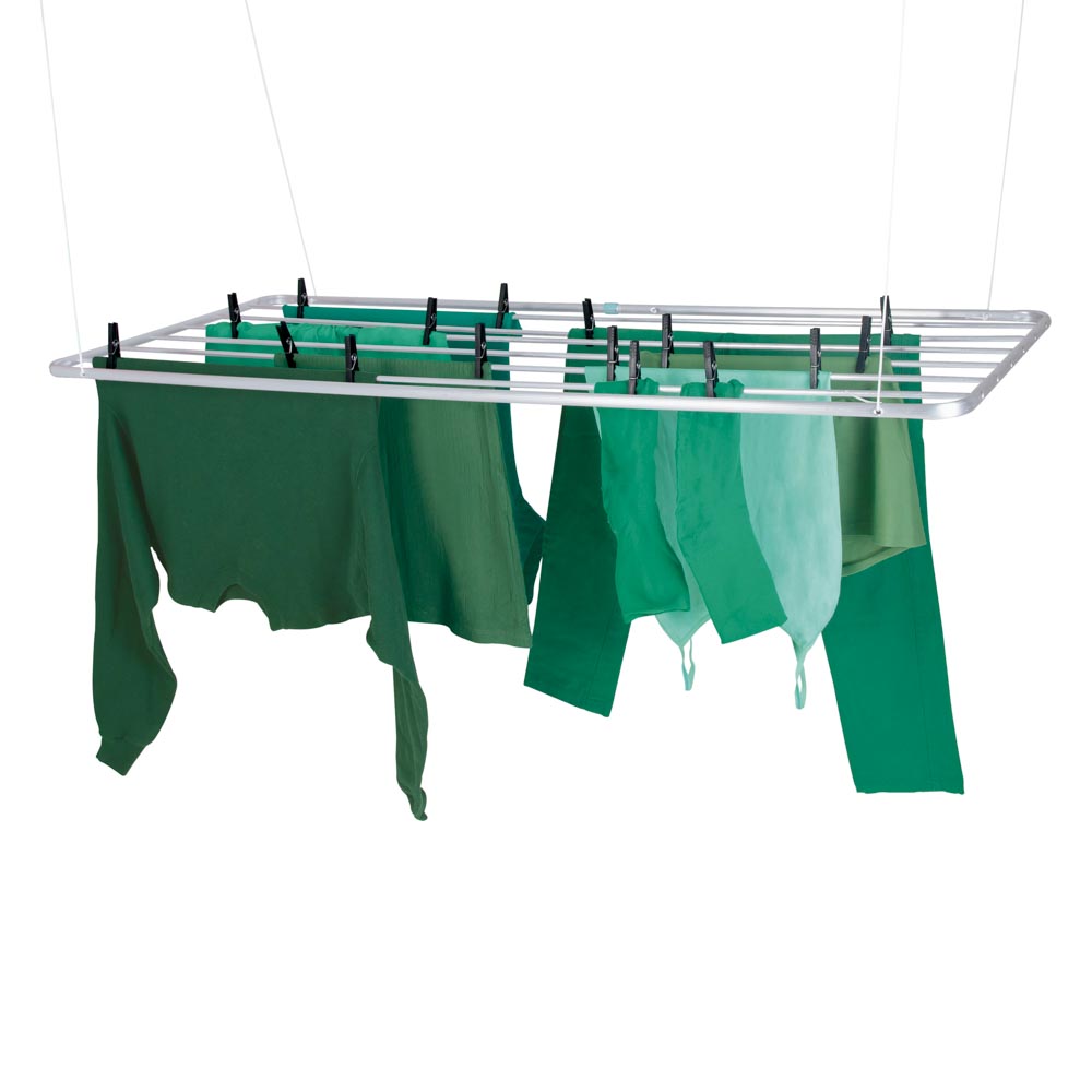 Varal de Teto MOR é ideal para espaços reduzidos, facilitando a secagem de roupas. Com design inteligente, acompanha kit para instalação no teto e corda ajustável para regular a altura. Fabricado com estrutura de alumínio para maior durabilidade.